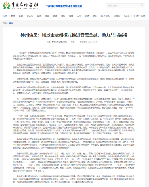 中国农村金融 | 神州信息:场景金融新模式推进普惠金融,助力共同富裕