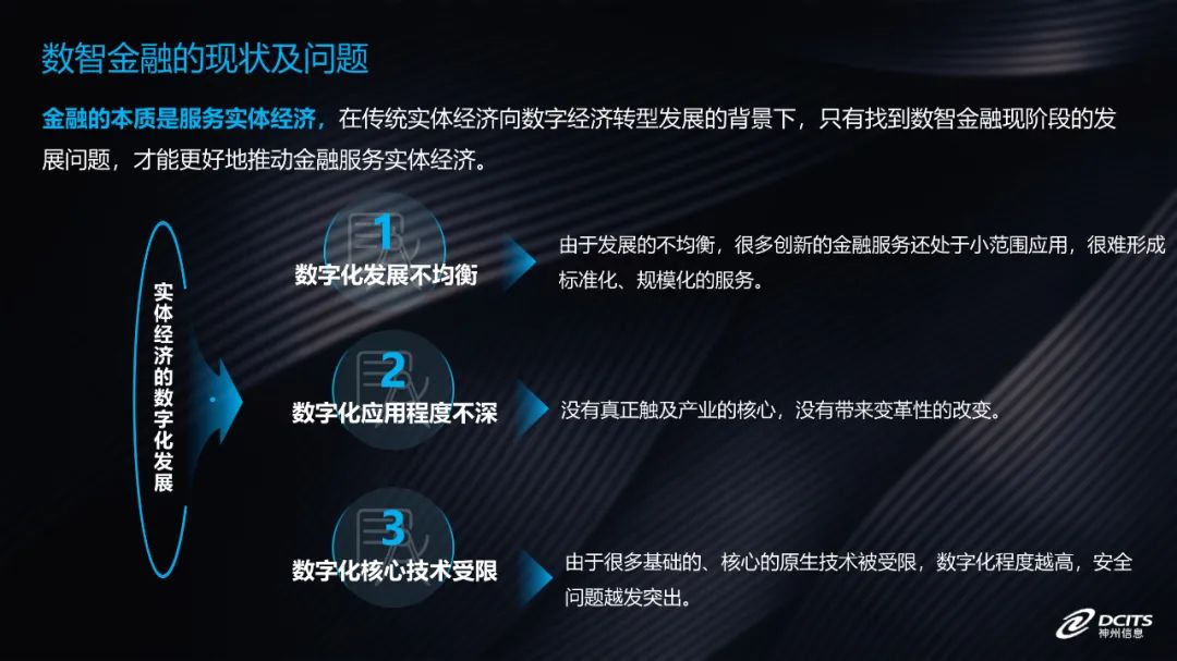 近几年,国家一直在强调金融的本质是服务实体经济。数字时代,行业数字化转型加速,在传统实体经济向数字经济转型发展的背景下,那么现阶段数智金融现状是什么,还存在哪些问题?只有从问题入手,我们才能更好的推动金融服务实体经济。